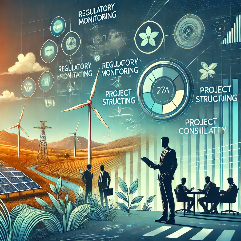Asesoría en la estructuración legal de proyectos de energías alternativas, incluyendo la formación de joint ventures, alianzas estratégicas y estructuración de financiamiento.